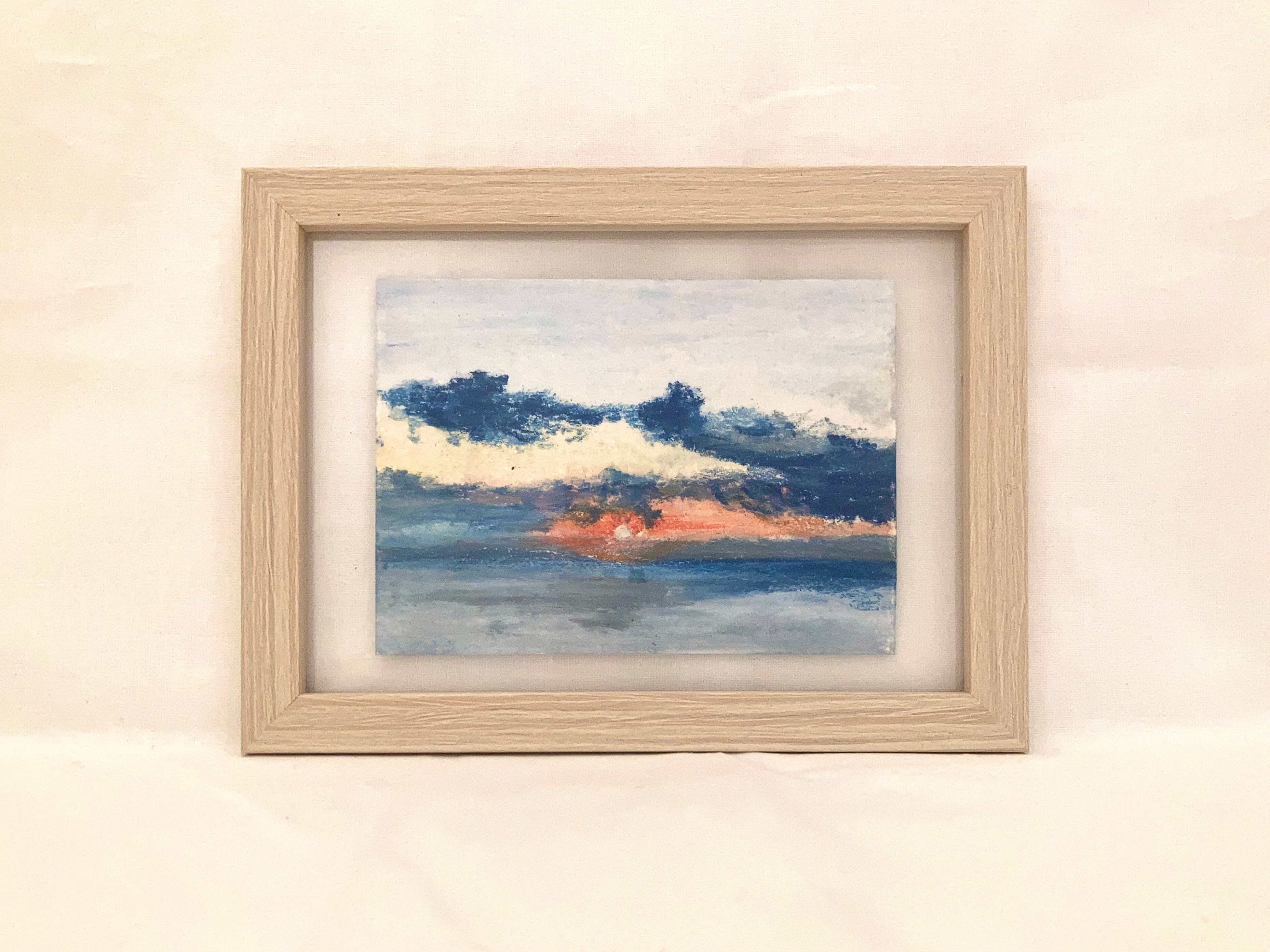 パステル画 No.84「伊豆 初日の出」 額込みの大きさ: 約15×20cm 額付きです