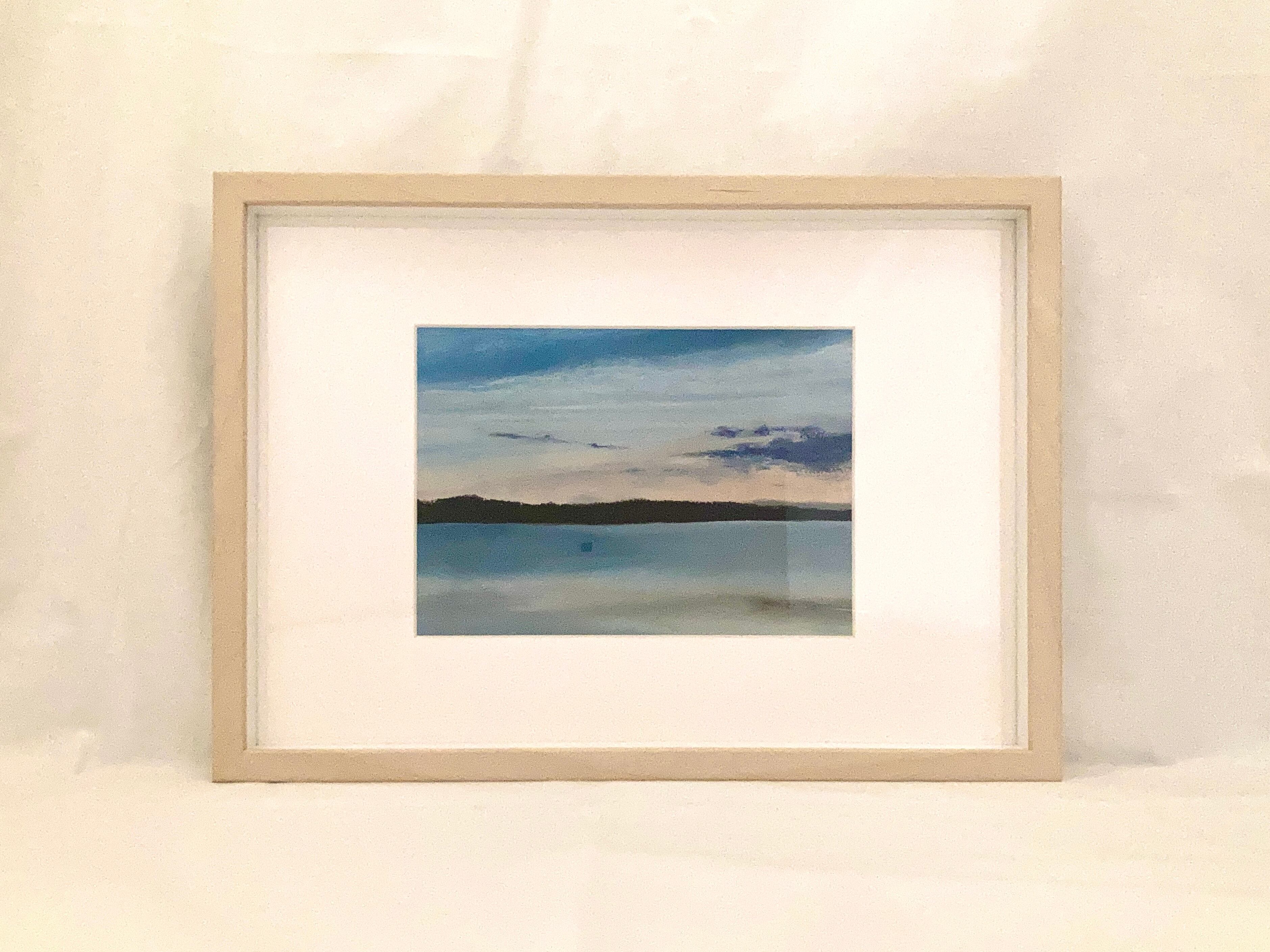 パステル画 No.64「多摩湖の夕暮れ」